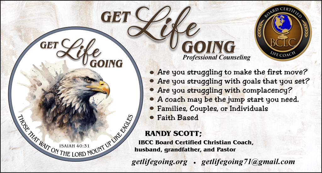 Get your life going with Randy Scott; IBCC Board Certified Christian Life coach, husband, grandfather and Pastor.